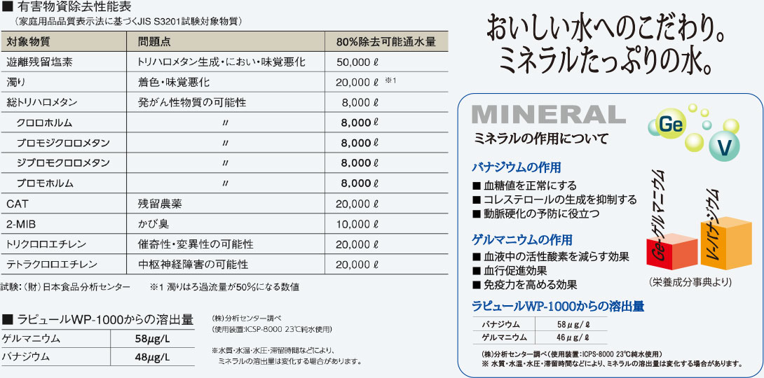 フランスのパスツール研究所や(財)日本食品分析センターをはじめ、誕生以来、世界有数の検査機関による厳正な試験を繰り返し、浄水能力を実証してきました。